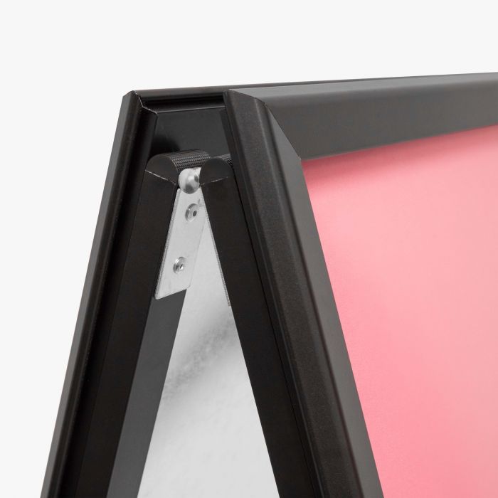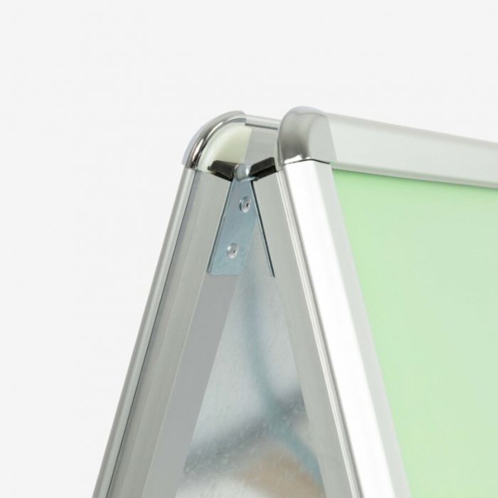 Het Klapbord is een klassiek en flexibel stoepbord waarmee je jouw boodschap snel en effectief onder de aandacht brengt bij voorbijgangers of klanten. Dankzij het lichtgewicht aluminium frame met kunststof elementen is het bord eenvoudig neer te zetten, te verplaatsen en ook bestand tegen spatwater. Je plaatst posters van A1-formaat aan beide zijden van het bord. Dankzij de handige dubbelzijdige kliklijsten kun je de poster eenvoudig verwisselen.